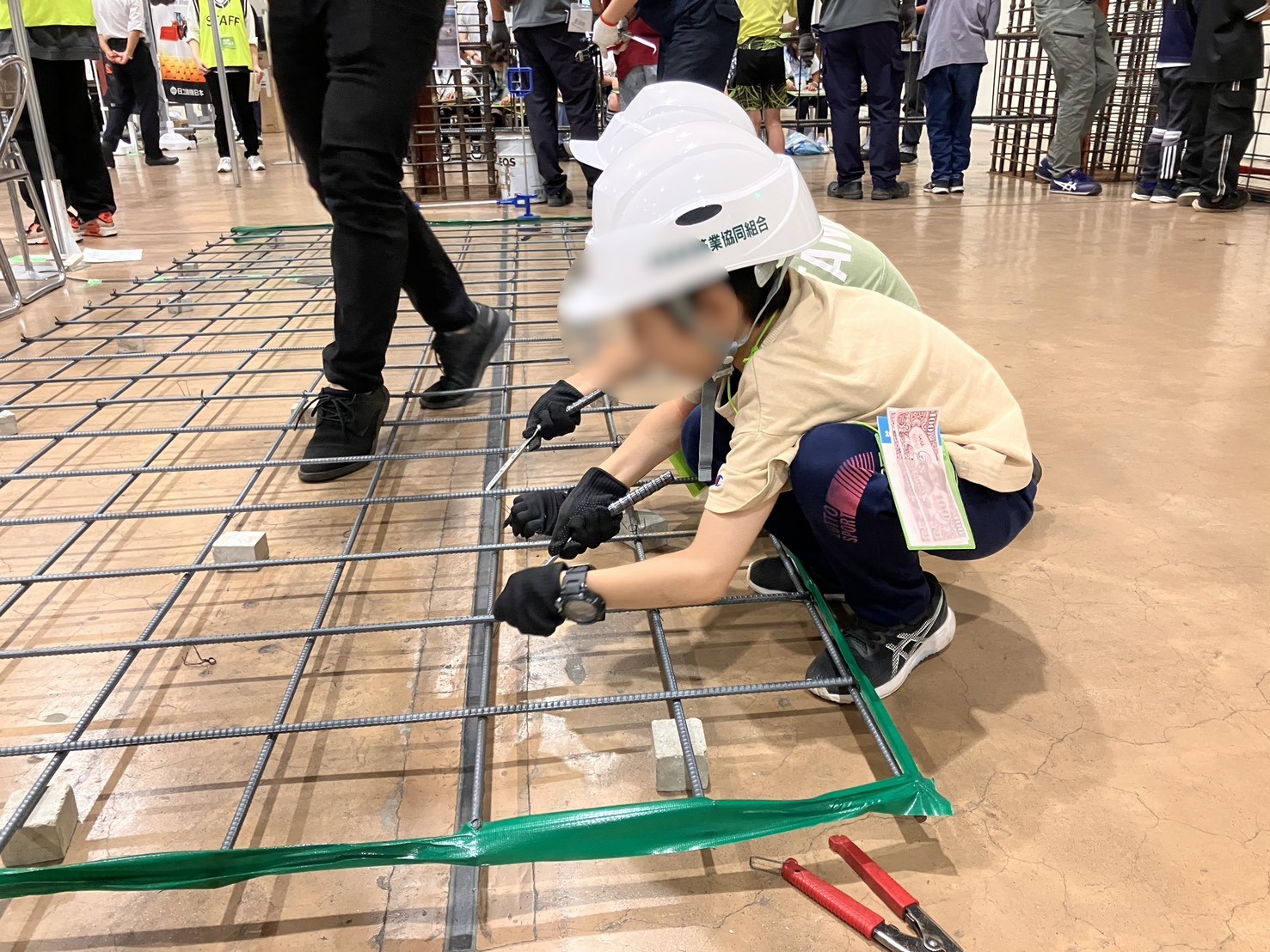鉄筋の結束や曲げ・切断といった作業を実際に体験してもらい、建設現場の仕事の一端に触れていただきました。2日間で256名の生徒が参加し、皆さん楽しそうに取り組んでいる姿が印象的でした。